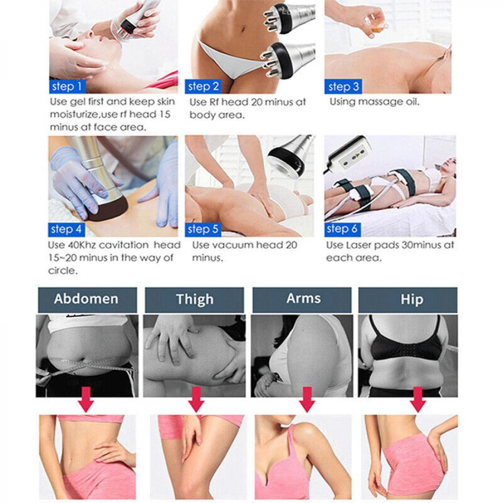 【6 w 1 + Roczna Gwarancja】 Wyposażony w 6 różnych głowic do masażu, w tym głowicę kawitacyjną 40 kHz, głowicę z ujemnym ciśnieniem, głowicę trójpolową, czworopolową i sześciopolową. Kompletny zestaw programów dla wszystkich rodzajów skóry i części ciała, spełniający potrzeby pielęgnacji ciała, ujędrniania skóry, redukcji tłuszczu, przyspieszania metabolizmu itp. Oferujemy wyłączną roczną gwarancję na nasze urządzenie z prostym procesem wymiany. W razie pytań prosimy o kontakt z naszym przyjaznym zespołem wsparcia klienta.