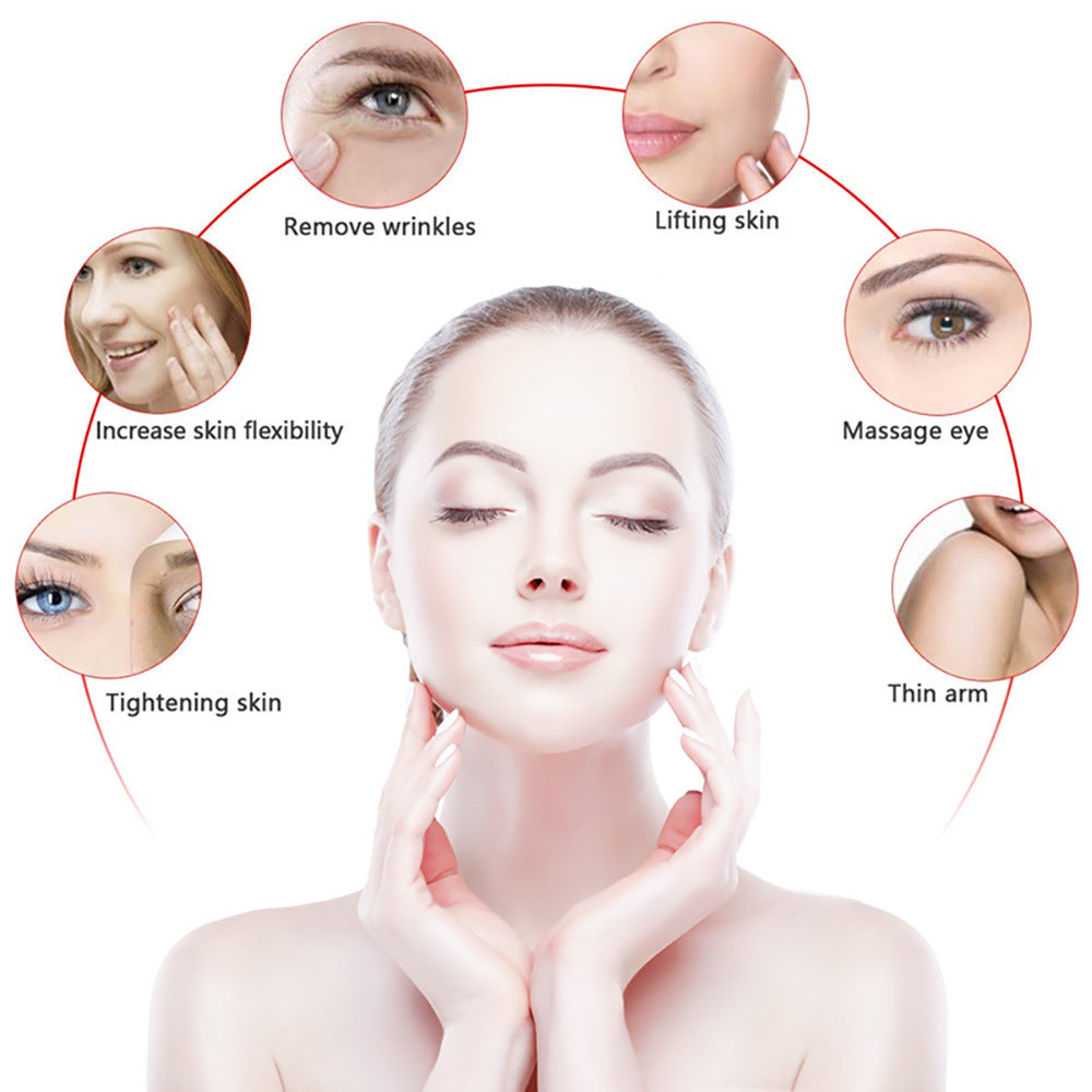 【Usuwanie zmarszczek i ujędrnianie】Wielogłowicowy masaż skóry pobudza komórki skóry i wspiera szybkie wytwarzanie kolagenu przez fibroblasty, co stymuluje napięcie mięśni skóry, zwiększa jej elastyczność, eliminuje zmarszczki twarzy i ujędrnia skórę.