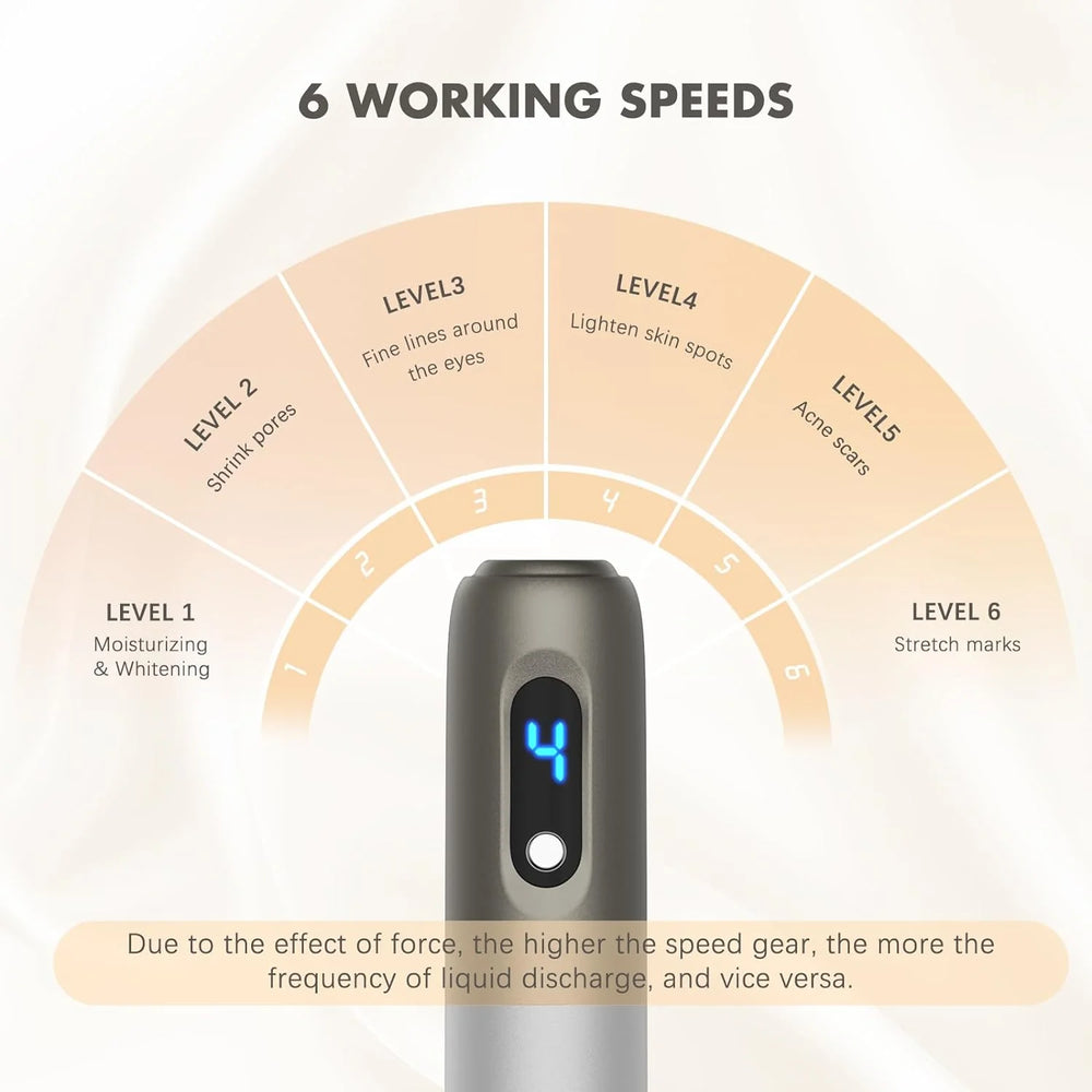 【REGULOWANA DŁUGOŚĆ IGIEŁ】: Długopis działa poprzez automatyczne wchodzenie i wychodzenie igieł ze skóry. Regulowana długość igieł oraz 6 poziomów prędkości pracy — od słabej do mocnej — pozwalają dopasować zabieg do różnych problemów i rodzajów skóry.
