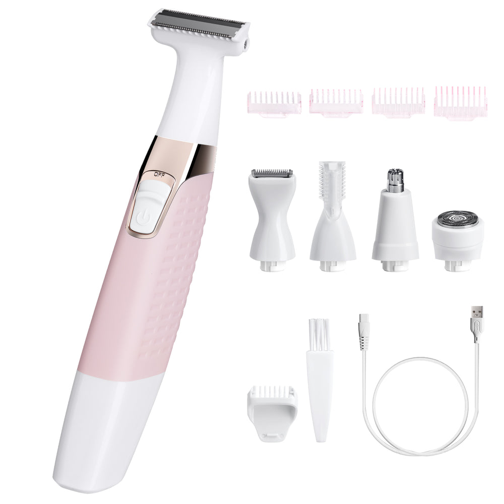 Wielofunkcyjny trymer 5 w 1, elektryczna maszynka do golenia dla kobiet i wielofunkcyjne golenie, w tym przycinanie bikini, nos, brwi, maszynka do golenia z folii aluminiowej, ogolona głowa, 5 przełączanych akcesoriów.