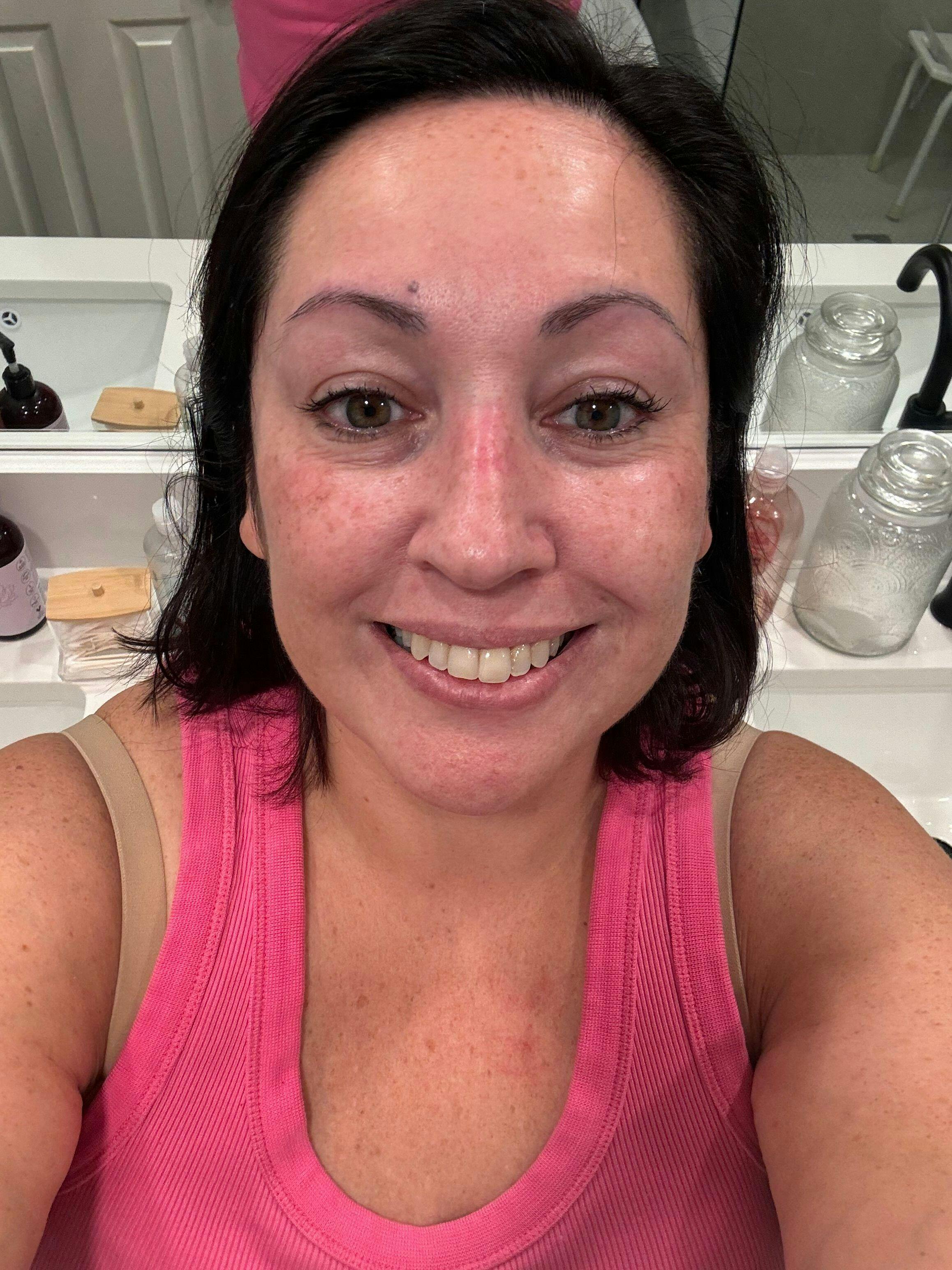 Początkowo kupiłam tę maskę dla odmłodzenia twarzy, ale dostałam o wiele więcej niż się spodziewałam. Stosuję ją na różne partie ciała i efekty są niesamowite. Miałam plamy egzemy pod piersiami i użyłam tam maski. Nie tylko swędzenie zniknęło, ale obszar wydaje się goić. Po mikropigmentacji brwi skóra zagoiła się dużo szybciej niż za pierwszym razem. Używam maski wieczorem i to bardzo relaksujące – łatwiej zasypiam w dni, kiedy ją stosuję. Jeśli chodzi o moją skórę, czyli powód zakupu maski, wydaje się być trochę jędrniejsza i mniej pomarszczona. Mam ją dopiero od kilku tygodni i wiem na pewno, że będę jej używać tak długo, jak będzie działać.