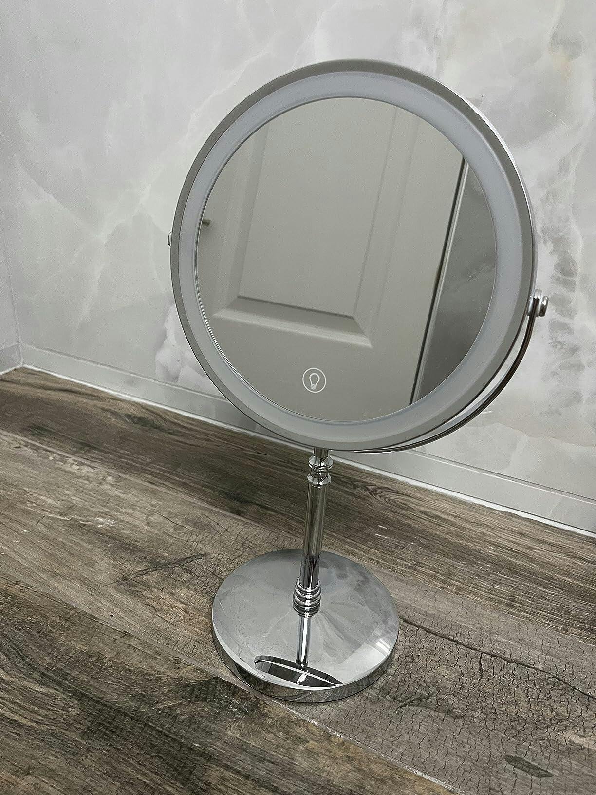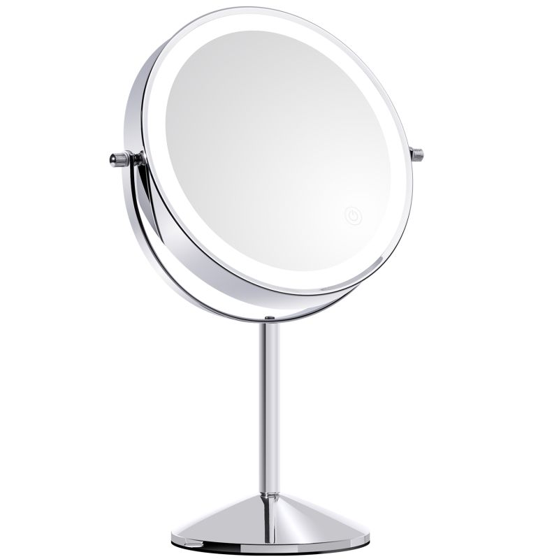 Dwustronne lusterko do makijażu LED 1x i 10x). Obie strony są idealne dla każdego wykonującego makijaż, noszącego soczewki kontaktowe oraz depilującego brwi, golącego, układającego fryzurę, pielęgnującego twarz czy nakładającego tusz do rzęs.