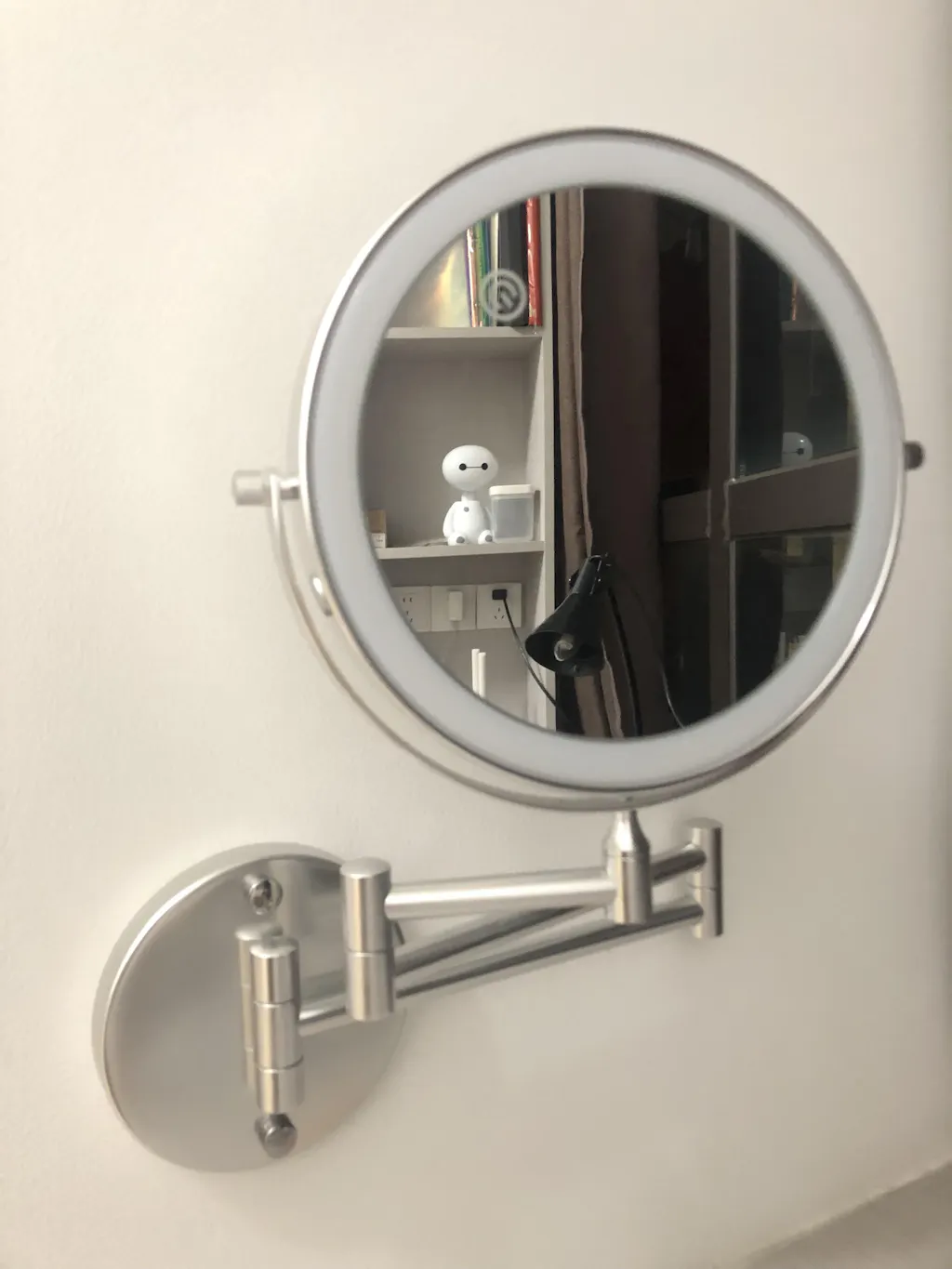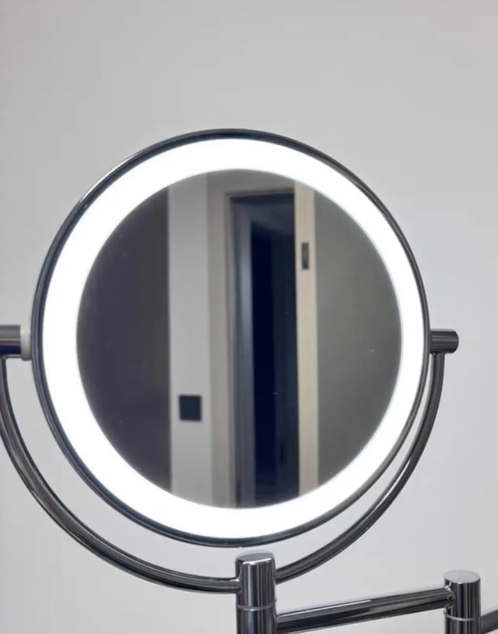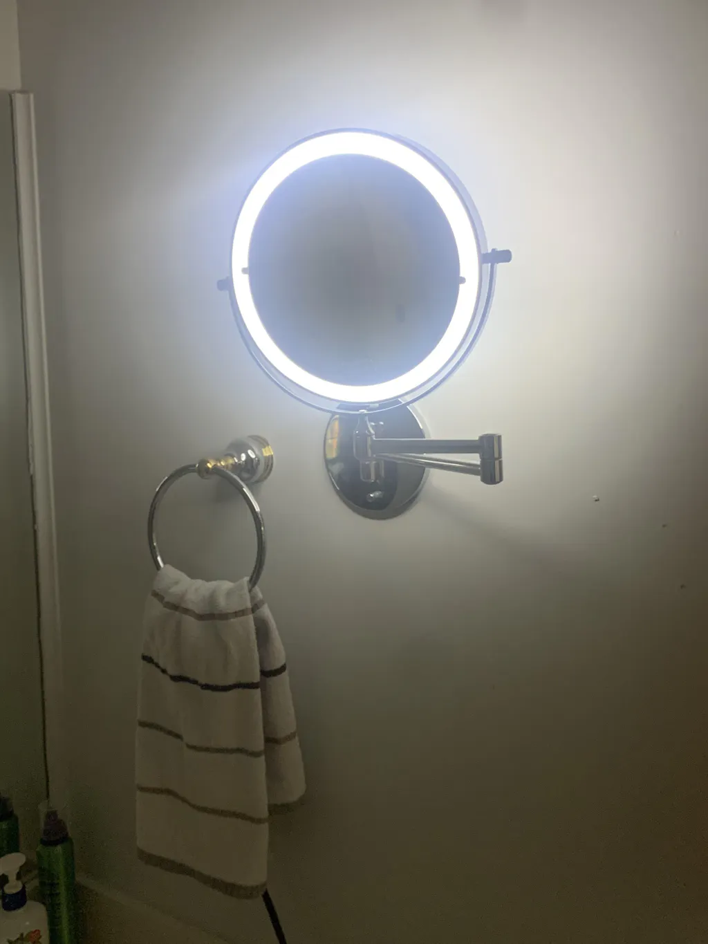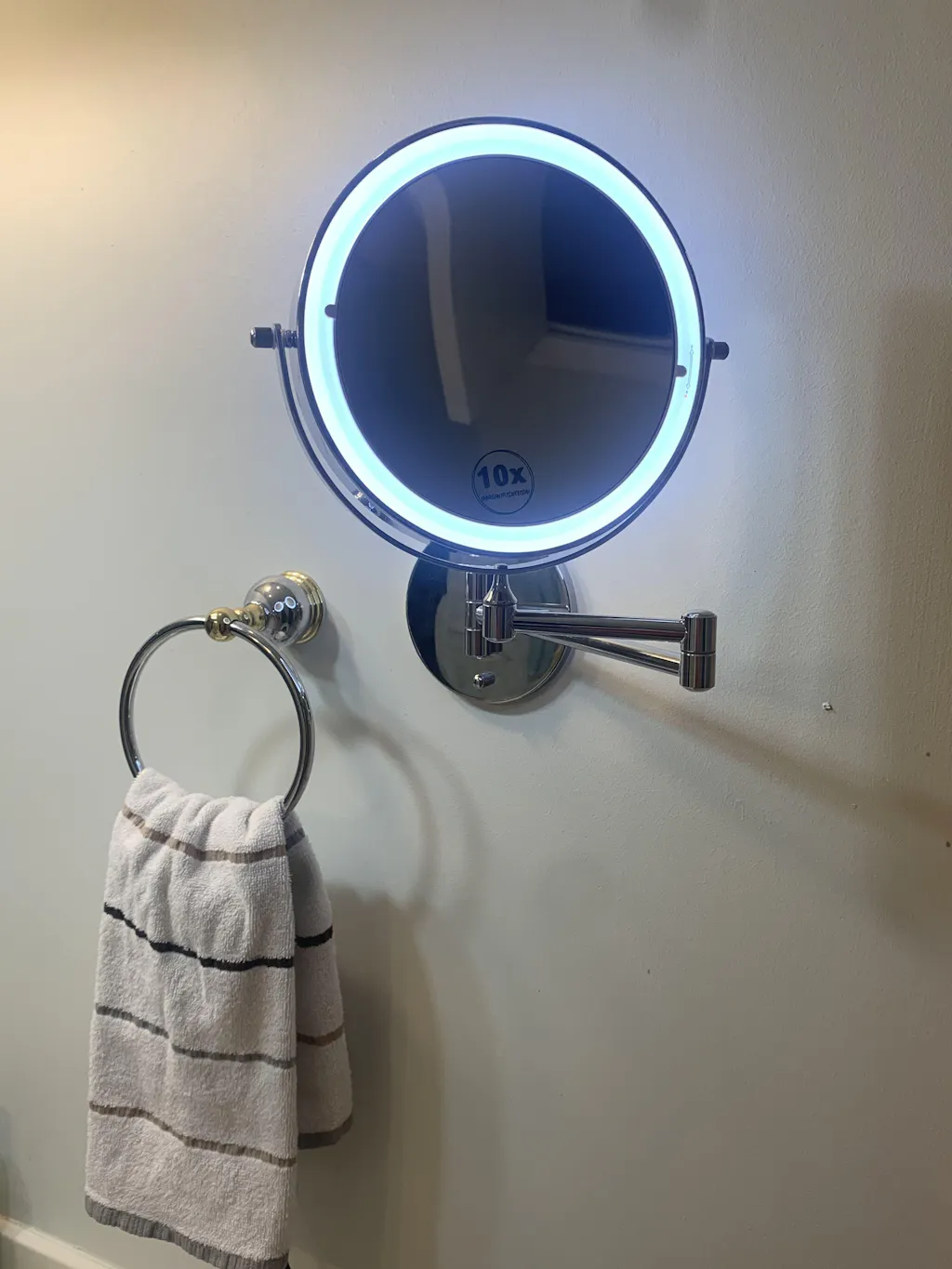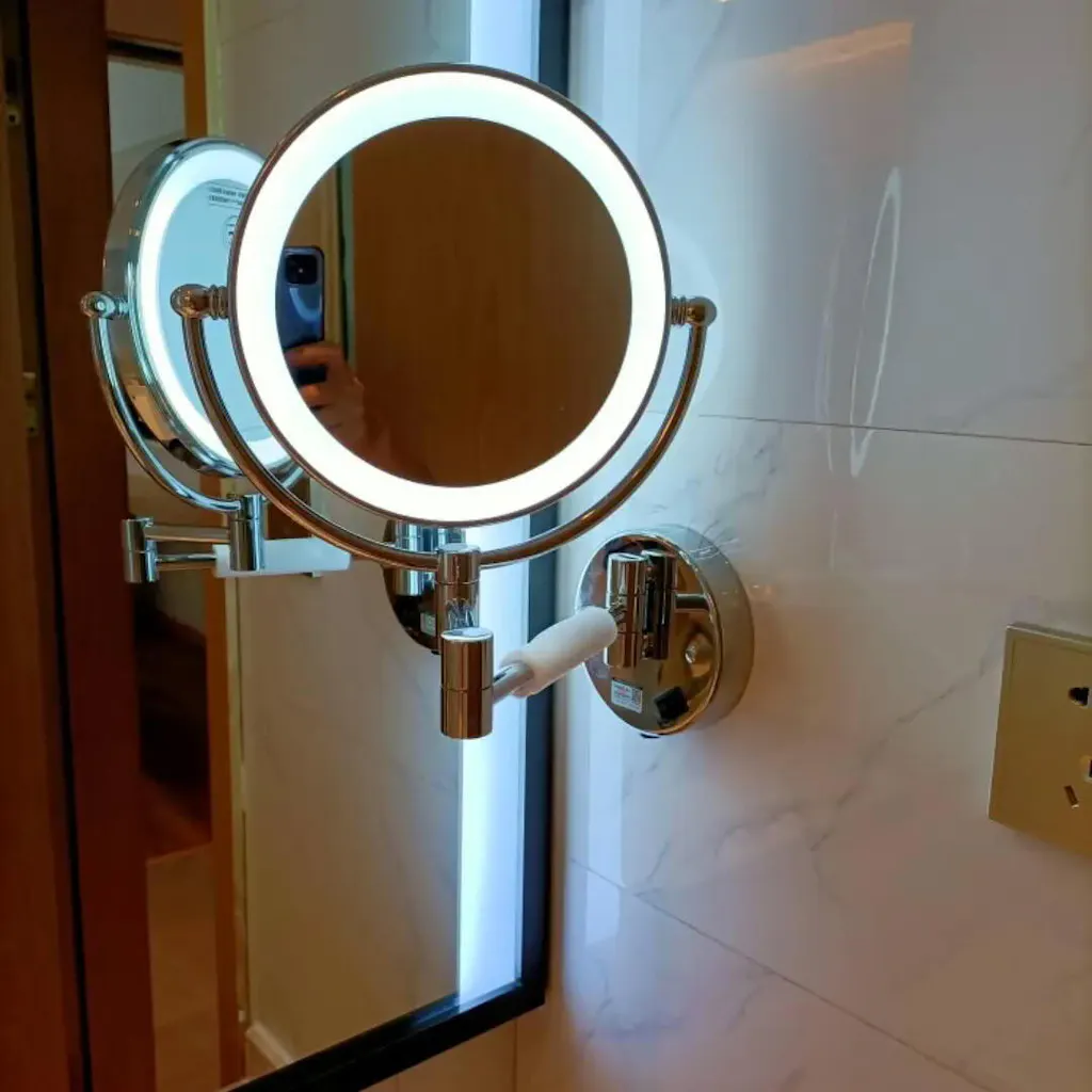 Dzięki temu naprawdę mogę przyjrzeć się twarzy z bliska. Mam problemy ze wzrokiem, więc to dla mnie cudowne. Nie używam dołączonego światła, więc nie mogę ocenić jego działania. Moje jest teraz zamontowane na ścianie i zostaje tam, co jest bardzo dobre. Stare było przyklejone do lustra i odpadało co około 6 miesięcy. Nie spodziewam się tego przy tym. Łatwo się wysuwa do użycia i chowa do przechowywania.