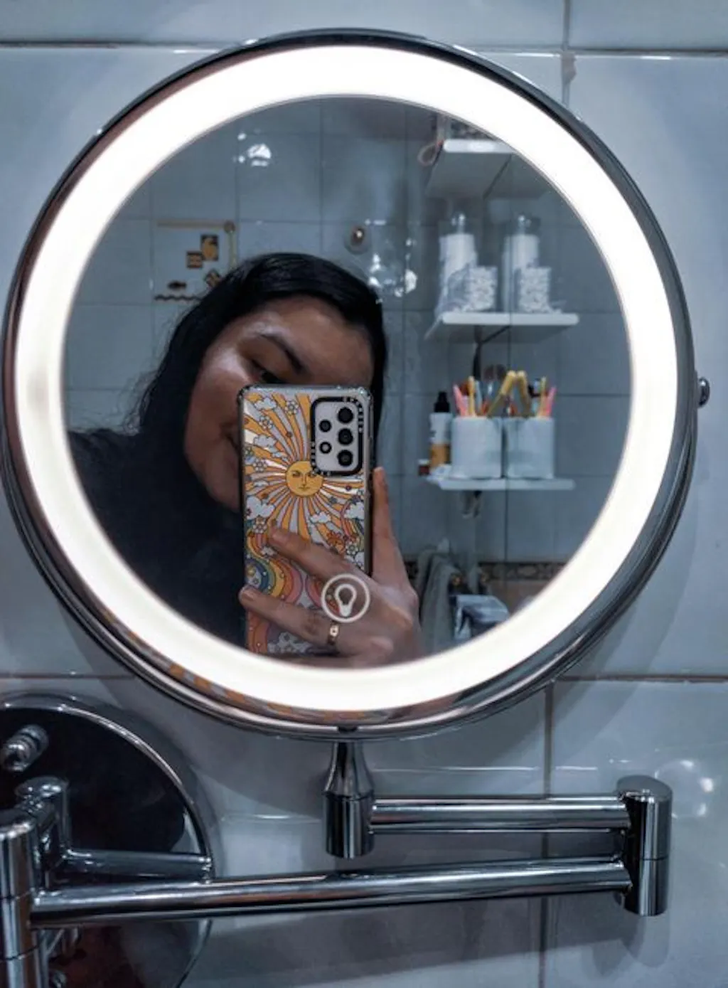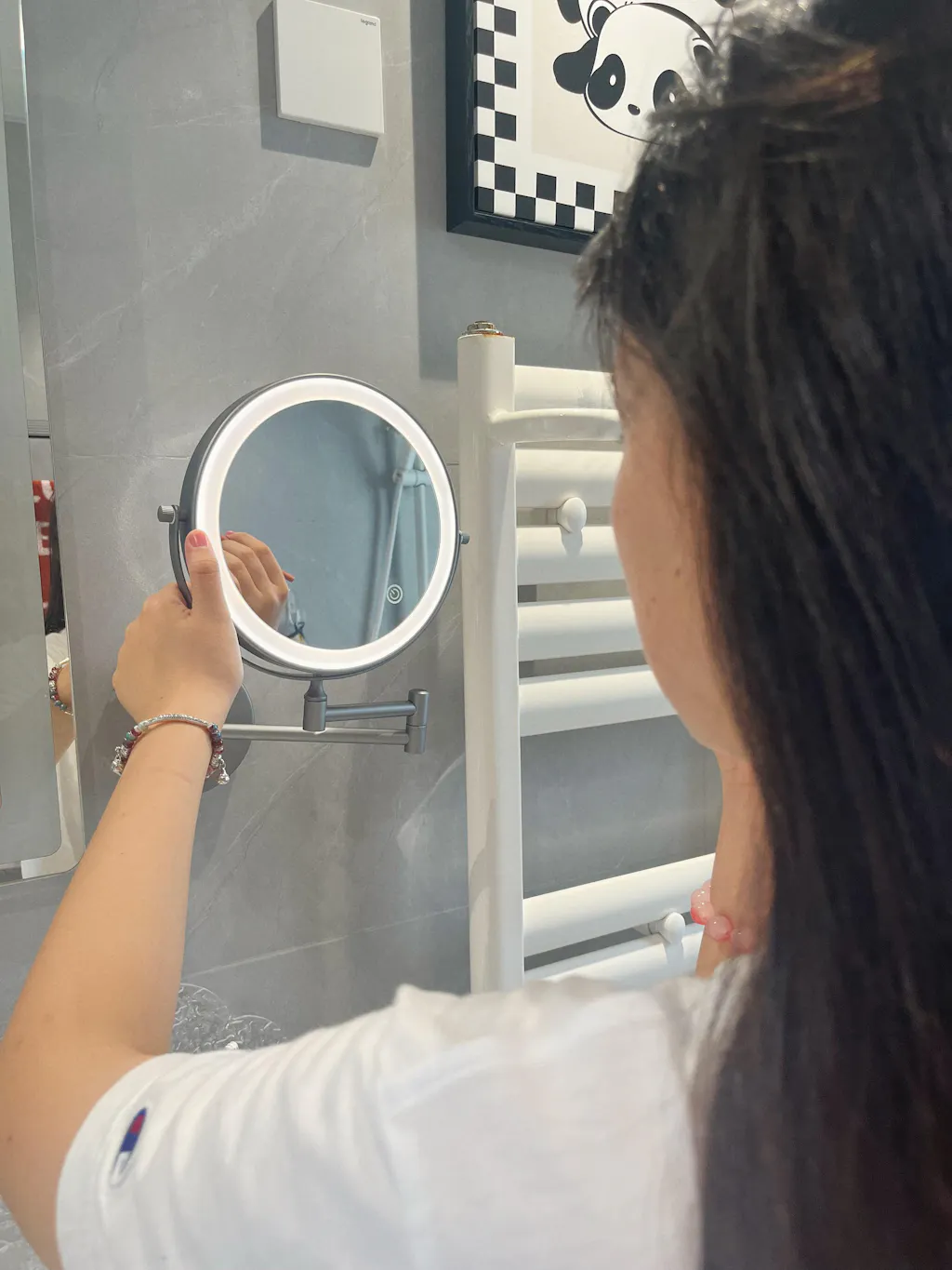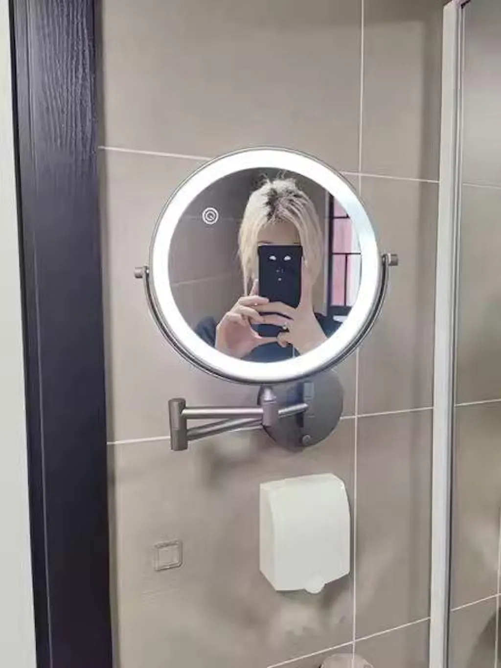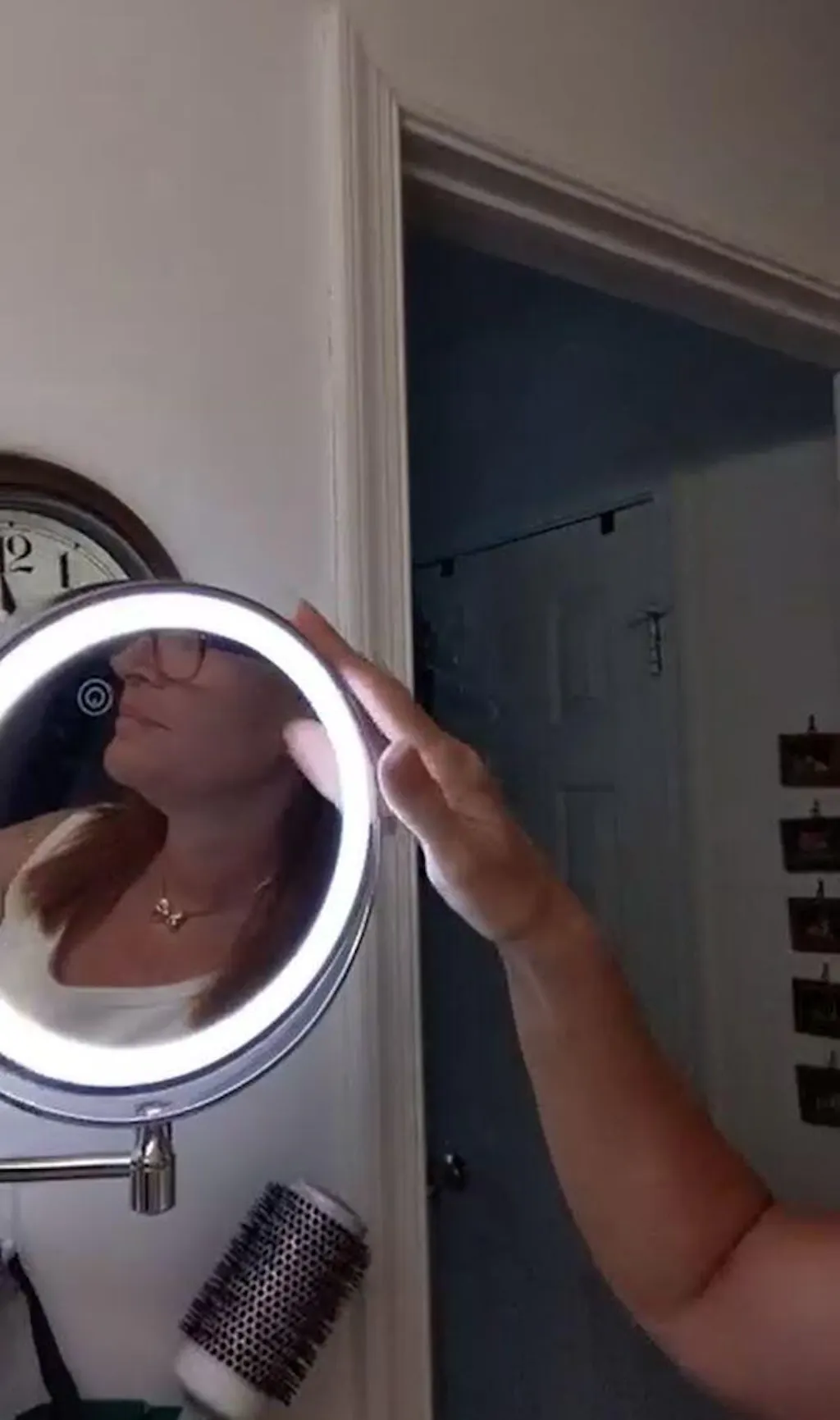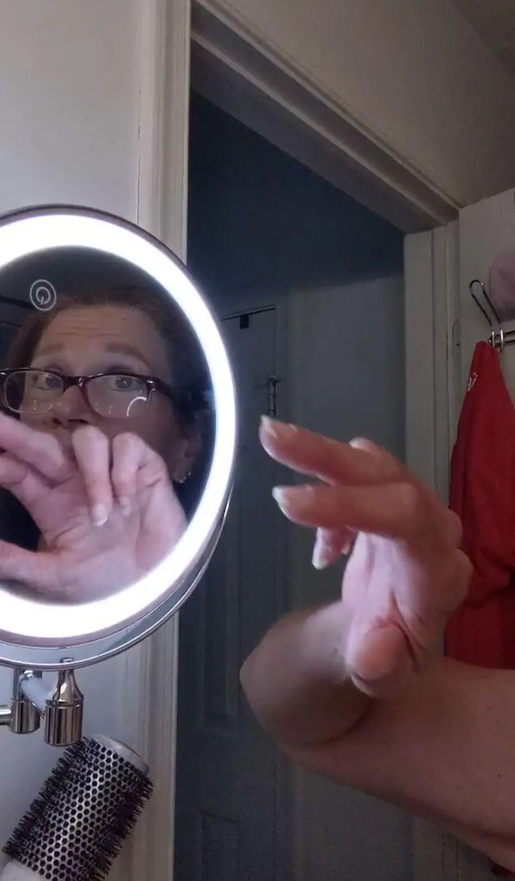 Dzięki temu naprawdę mogę przyjrzeć się twarzy z bliska. Mam problemy ze wzrokiem, więc to dla mnie cudowne. Nie używam dołączonego światła, więc nie mogę ocenić jego działania. Moje jest teraz zamontowane na ścianie i zostaje tam, co jest bardzo dobre. Stare było przyklejone do lustra i odpadało co około 6 miesięcy. Nie spodziewam się tego przy tym. Łatwo się wysuwa do użycia i chowa do przechowywania.