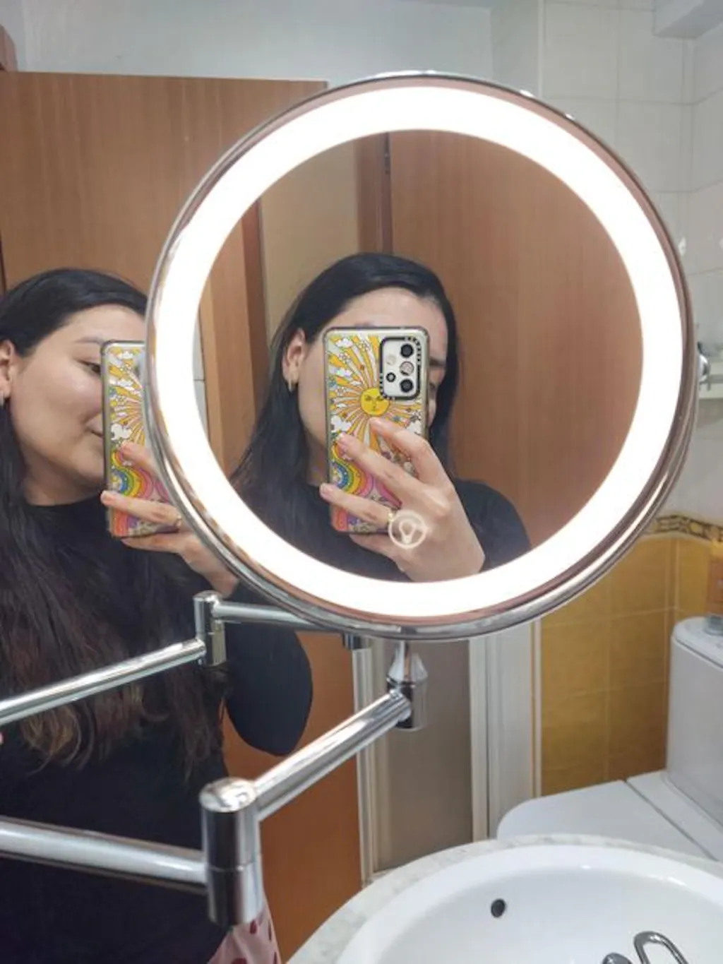 Kupiłam to jako prezent dla mamy, ale po wyjęciu z opakowania, żeby sprawdzić działanie, muszę przyznać, że jestem zazdrosna. Sama mam podobne lustro ścienne, ale jest mniejsze i bez podświetlenia. To lustro ma trzy poziomy światła, a ustawienie 100% musi dawać co najmniej 200 lumenów. Lustro jest w całości metalowe, bez ani jednej plastikowej części. Pierścień świetlny po obu stronach można łatwo włączyć lekkim dotknięciem wyznaczonego miejsca na powierzchni lustra 1x. Chociaż cieszę się, że to świetny prezent, chciałabym, żeby pudełko było w wersji prezentowej, a nie zwykłe brązowe, żebym nie musiała drukować zdjęcia produktu i przyklejać go sama. Dodatkowo, skoro pierścień świetlny jest po obu stronach lustra, przydałby się też przycisk włączania po każdej stronie. Ogólnie nadal jestem zadowolona i pod wrażeniem jakości wykonania, teraz rozważam wymianę własnego lustra.