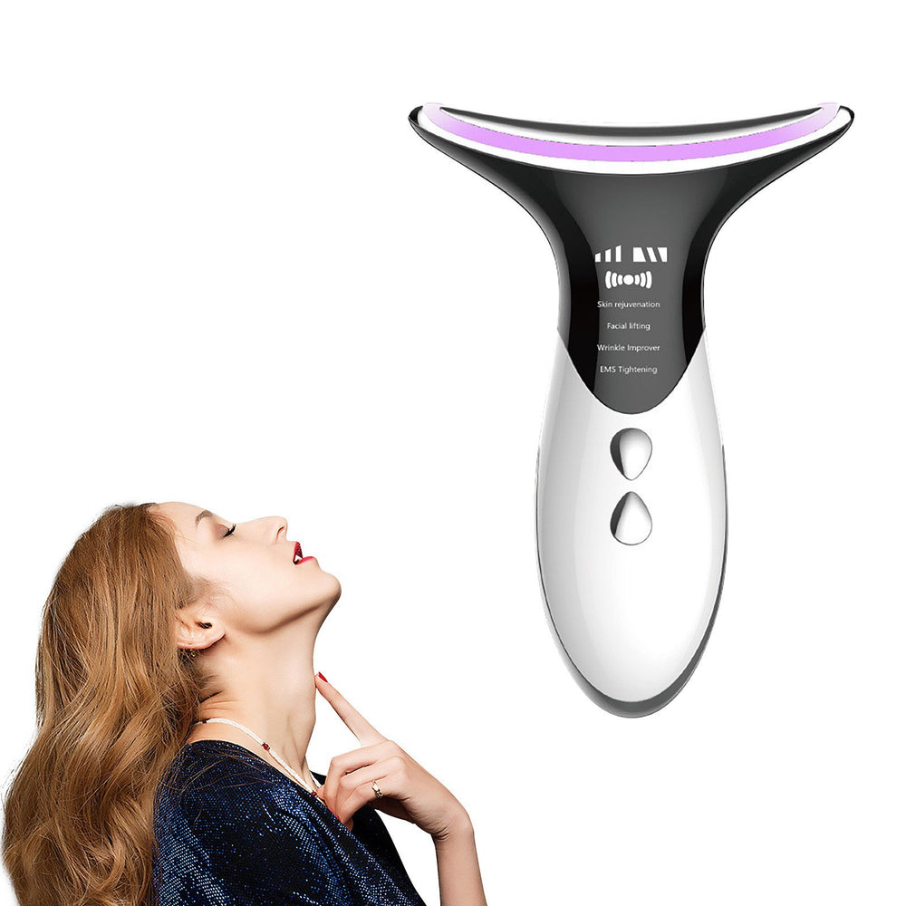 Masażer Szyi EMS, Podgrzewany Elektrycznie, do Napinania Zmarszczek Wibracyjnych, Tryb 3 Kolorów, Ladowanie USB