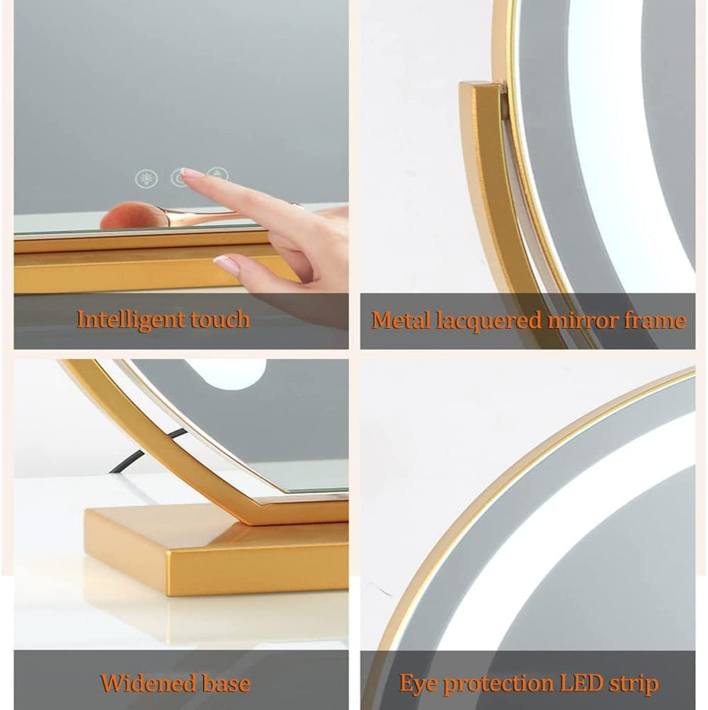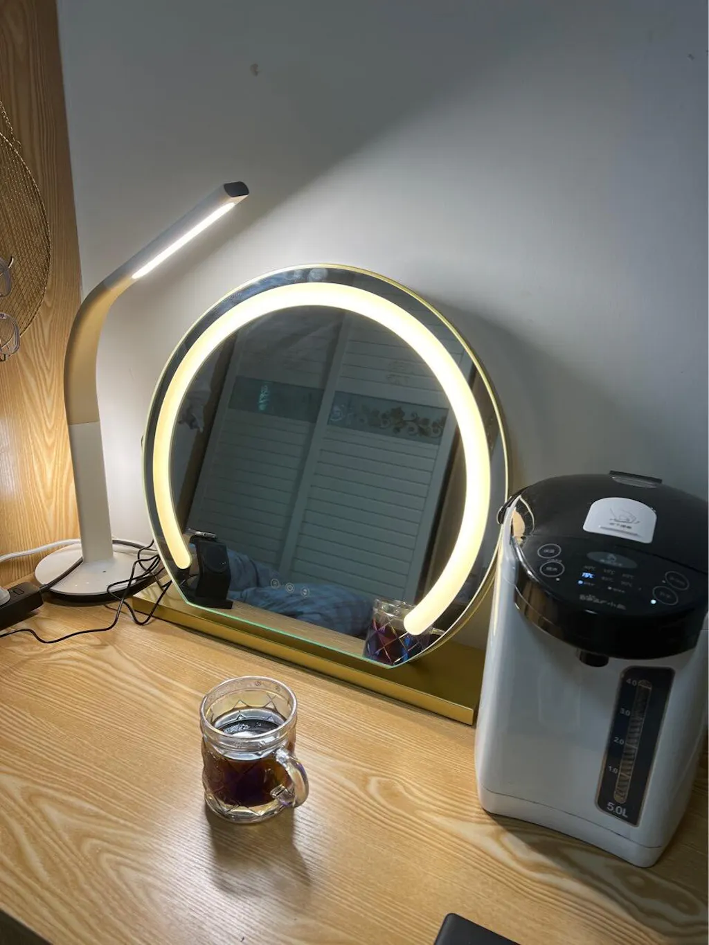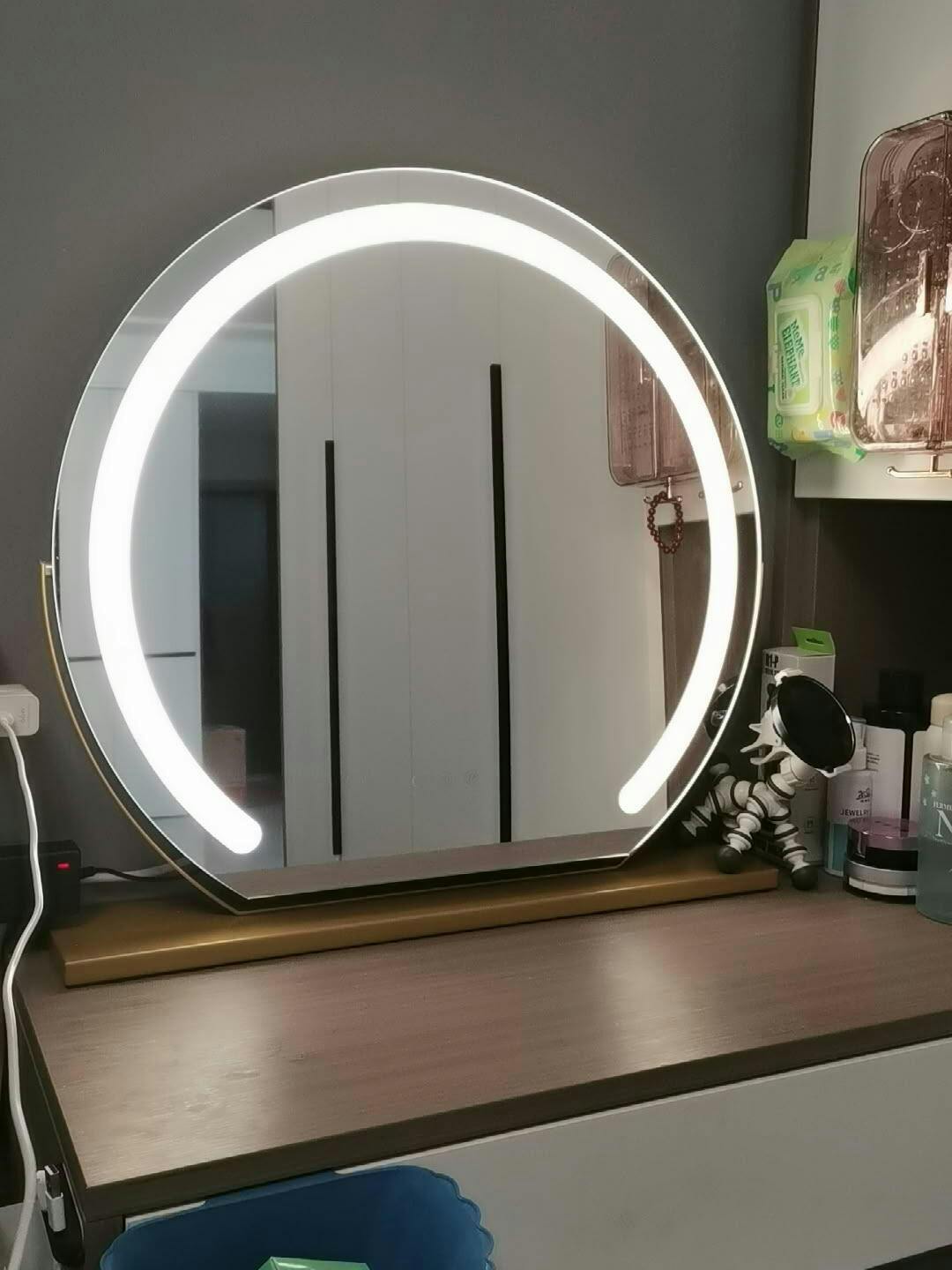 Duże lusterko kosmetyczne, wystarczająco duże, aby zobaczyć górną część ciała i sprawdzić pełny makijaż twarzy. Lustro przyjmuje wysokiej jakości pogrubioną metalową ramę i gładką podstawę, wielowarstwową farbę w sprayu, można ją mocniej umieścić na stole w sypialni lub toaletce, połysk jest trwalszy, zapobiega zadrapaniom na stole.